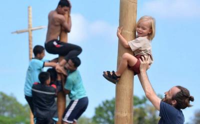 Bocah Bule Ikut Panjat Pinang di Lapangan Puputan Bali