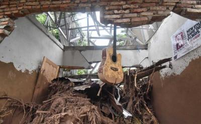 Banjir Lombok Barat, Tembok Rumah Roboh Menyisakan Gitar Tergantung