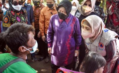 Mensos Risma Kunjungi Korban Banjir Bandang Lombok