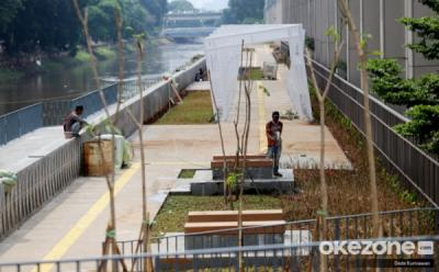 Intip Pembangunan Taman dan Trotoar di Tepi Kanal Banjir Barat