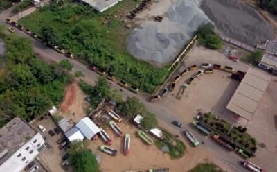 Foto Udara Truk dan Bus Antre Mendapatkan BBM Solar Bersubsidi di Palu