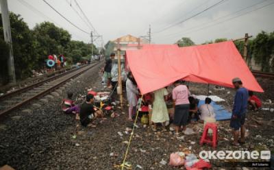 Warga Dirikan Tenda Pengungsian di Perlintasan Kereta Api