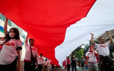 Bendera Merah Putih Sepanjang 1.700 Meter Dibentangkan di Kawasan Monas