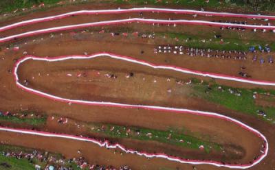 Foto Udara Pembentangan Bendera Merah Putih Sepanjang 4.000 Meter