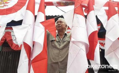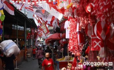 Pedagang Pernak-Pernik Hari Kemerdekaan di Pasar Jatinegara