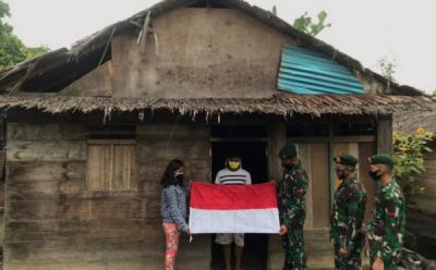 Prajurit Kostrad Bagi-Bagi Bendera Merah Putih kepada Warga Tobelo Maluku Utara