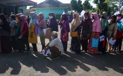 Antrean Panjang Warga Ciamis untuk Dapatkan BLT Minyak Goreng