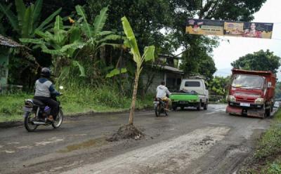 Protes Jalan Rusak dengan Ditanami Pohon Pisang di Tengah Jalan