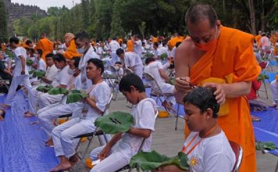 Upacara Potong Rambut Pabbajja Samanera di Borobudur