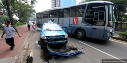 Ban Transjakarta Pecah, Bumper Taksi Rusak Parah