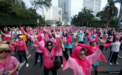 Peringati Hari Ibu, Ratusan Ibu-Ibu Senam Bersama di Kawasan Bundaran HI