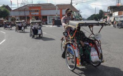 Unik, Petugas Gabungan Keliling Kota Purbalingga Sosialisasikan PPKM Darurat
