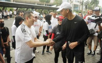 Hary Tanoesoedibjo dan Ganjar Pranowo Jalan Pagi Bareng di Kawasan CFD Jakarta