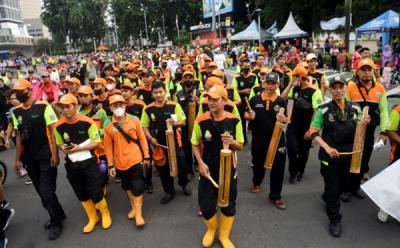 Petugas Kebersihan Ikuti Pawai Peringatan Hari Peduli Sampah di Kawasan Bundaran HI
