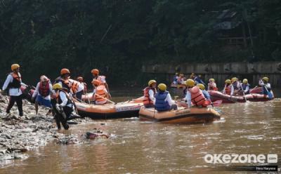 Gelar Operasi Bersih-Bersih, Rini Soemarno Naik Perahu Karet Susuri Sungai Ciliwung