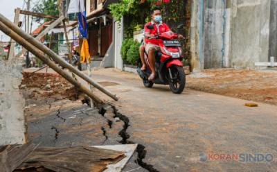 Imbas Pipa Air Bocor, Jalan di Pemukiman Warga Ciracas Retak