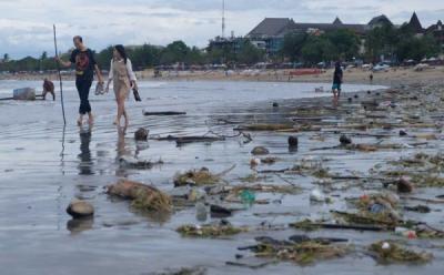 Sampah Berserakan di Pantai Kuta Bali