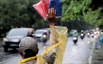 Cari Peruntungan, Penjual Jas Hujan Menjamur di Pinggir Jalan