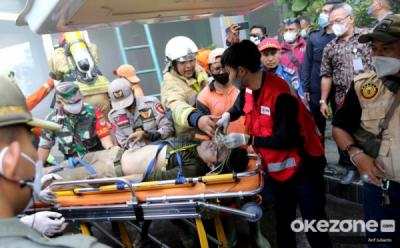 Momen Petugas Damkar Evakuasi Korban Kebakaran Gedung Cyber 1