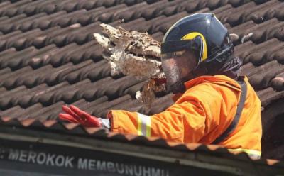 Petugas Damkar Evakuasi Sarang Tawon Vespa dari Permukiman Warga Kediri