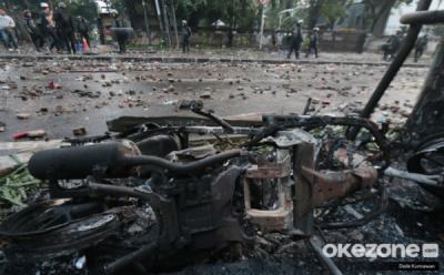 Dirusak Massa Aksi 22 Mei, Sejumlah Motor Berserakan di Jalan