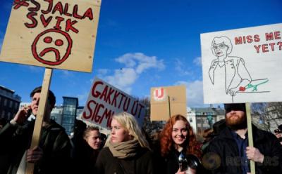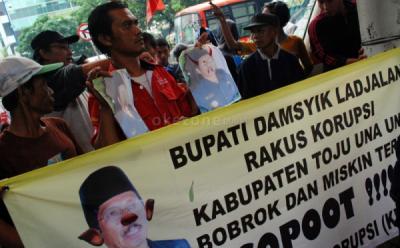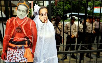 Gurita Raksasa Berwarna Hijau Ikut Unjuk Rasa di Depan Kedubes AS