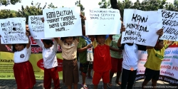 Warga Muara Angke Bawa Jeriken Gelar Aksi Tuntut Air Minum yang Layak