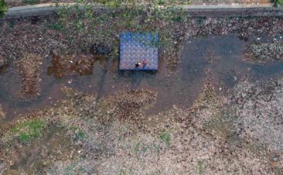 Foto Udara Menyusutnya Situ Cilodong Depok