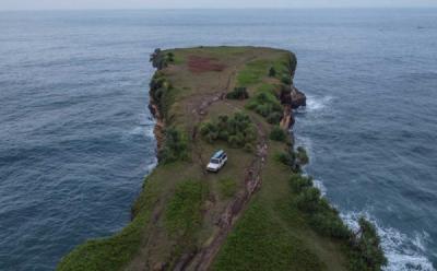 Foto Udara Destinasi Wisata Favorit Karang Bolong Pacitan