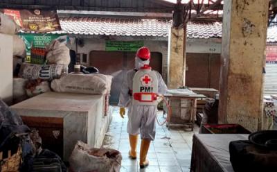 Cegah Penyebaran Corona, PMI Bersama Dinkes Semprot Sejumlah Pasar di Kabupaten Tegal