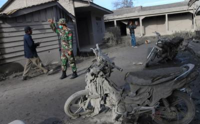 Debu Vulkanik Erupsi Gunung Sinabung Tutupi Desa Tiga Pancur Karo