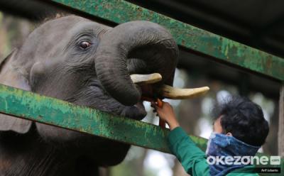 Momen Petugas Memberi Makan Gajah di Taman Margasatwa Ragunan