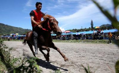 Joki Adu Cepat saat Lomba Pacuan Kuda Tradisional Gayo