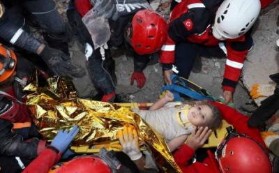 Penyelamatan Balita dari Reruntuhan Gedung Akibat Gempa Turki