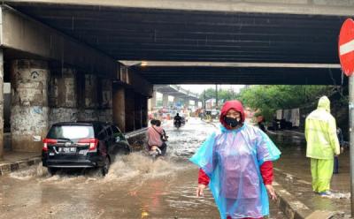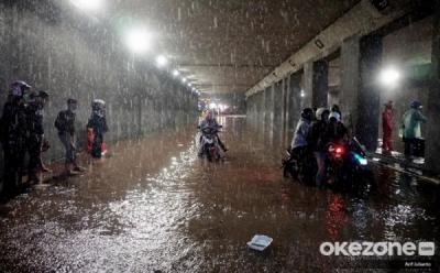 Pemotor Nekat Terobos Genangan Air di Underpass Dukuh Atas