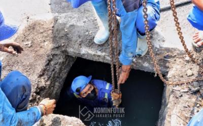 Masuk ke Gorong-Gorong, Pasukan Biru Bersihkan Lumpur di Kawasan Gambir