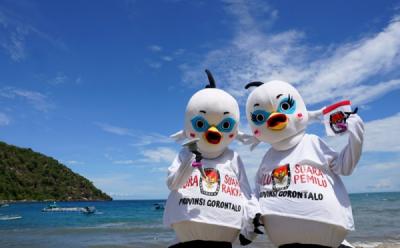 Maskot Sapa Warga Pesisir Gorontalo Sosialisasikan Pemilu 2024