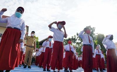 Pakai Seragam Putih Merah Rambut Tersisir Rapih Siswa SD Masuk Sekolah Lagi