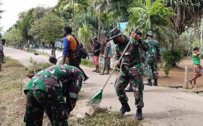 Ciptakan Lingkungan Bersih, Satgas Yonif 125/Simbisa Ajak Warga Gotong Royong