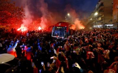 Bakar Flare, Suporter Sambut Kedatangan Bus Pemain Granada