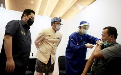 Menteri BUMN Erick Thohir dan Gubernur Jabar Ridwan Kamil Tinjau Sentra Vaksinasi