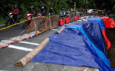 Jalan Yogyakarta-Wonosari Longsor dan Menghancurkan Separuh Jalan