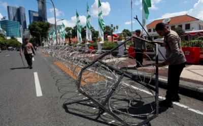 Polisi Pasang Kawat Berduri untuk Pengamanan Aksi MayDay di Surabaya