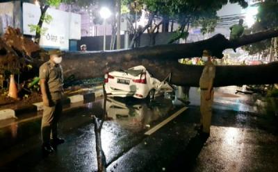 Hujan Deras Disertai Angin Kencang, Pohon di Jalan Sutan Syahrir Menteng Tumbang