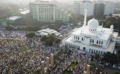 Foto Udara Pelaksanaan Sholat Idul Fitri di Masjid Al Azhar