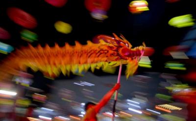 Pertunjukan Barongsai di Pusat Perbelanjaan