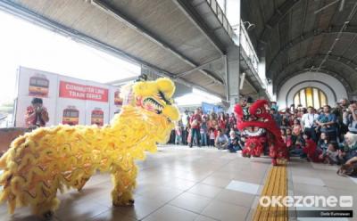 Atraksi Barongsai Hibur Penumpang KRL di Stasiun Jakarta Kota