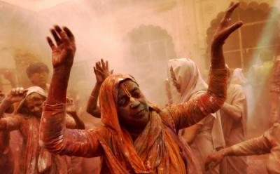 Perayaan Holi di Kuil Vrindavan