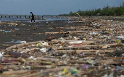 Sampah Menumpuk di Pantai Tiris Indramayu