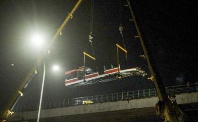 Gerbong LRT yang Alami Kecelakaan Diturunkan
